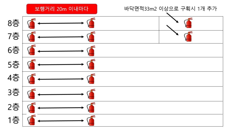 이렇게 중요한 소화기의 비치 개수 및 비치 거리를 모르시는분들이 많이 계셔서 이렇게 몇자 남깁니다.