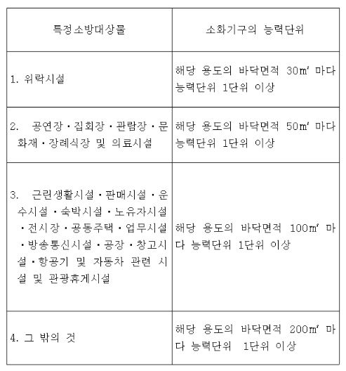 *그밖의것 : 바닥면적 200㎡ 마다 1단위 이상